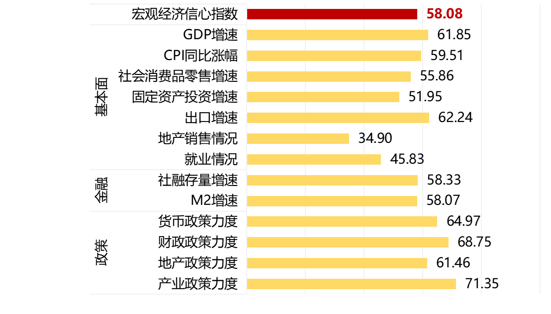 三类信心指数分别设置分项指标,分项指标采用五级量表形式,并对各选项赋值加权产生;数值在0-100之间,50为中性值,指数数值越高,表明信心越强。 ↑