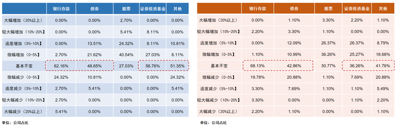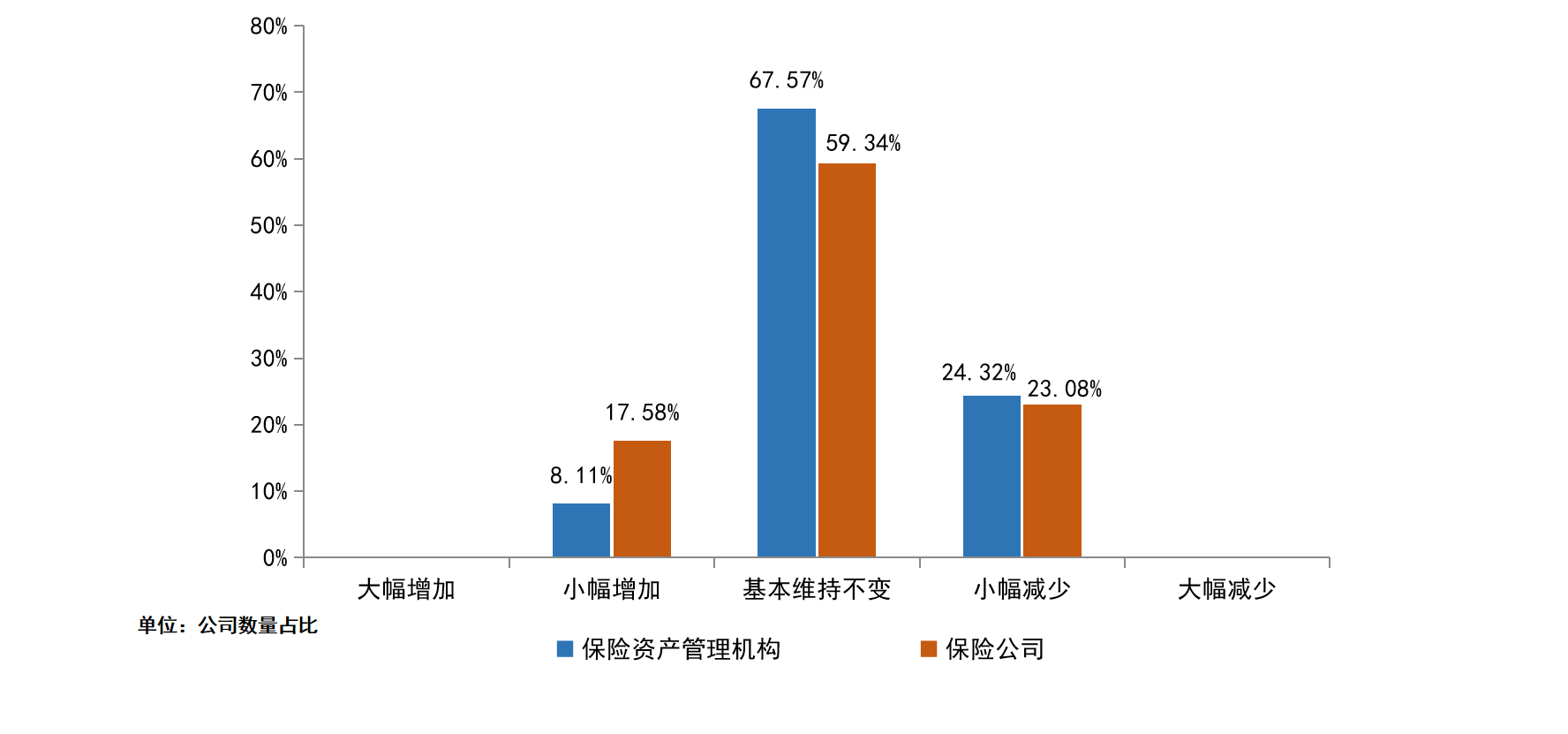 图1:保险资产管理机构和保险公司各类资产配置调整计划