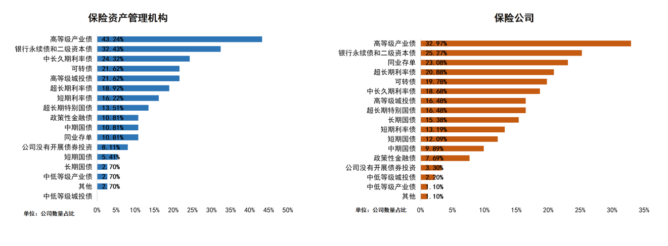 图7:保险资产管理机构和保险公司债券品种偏好