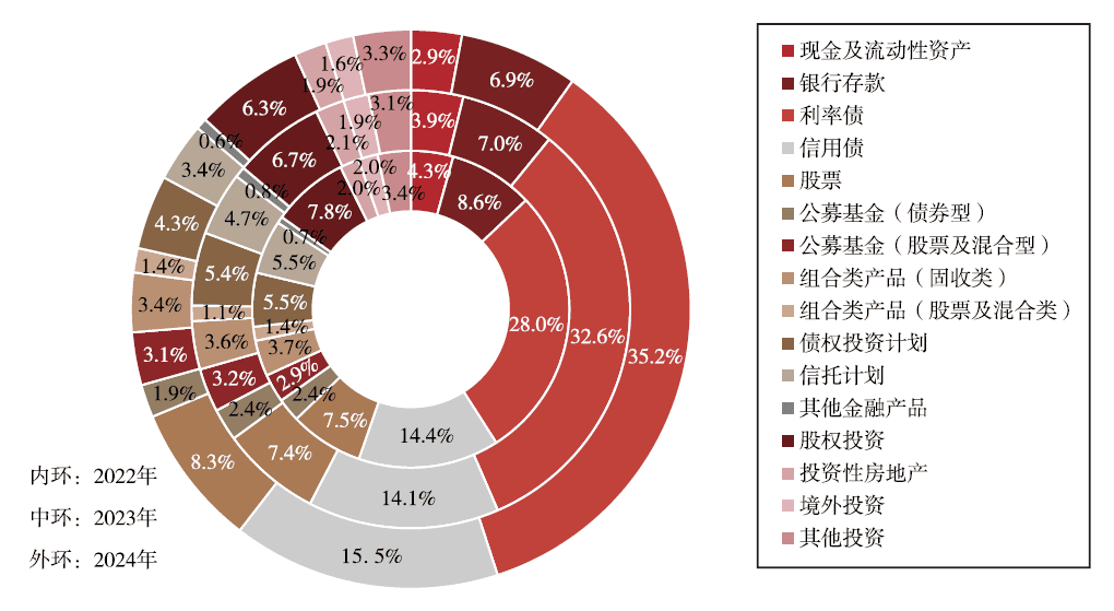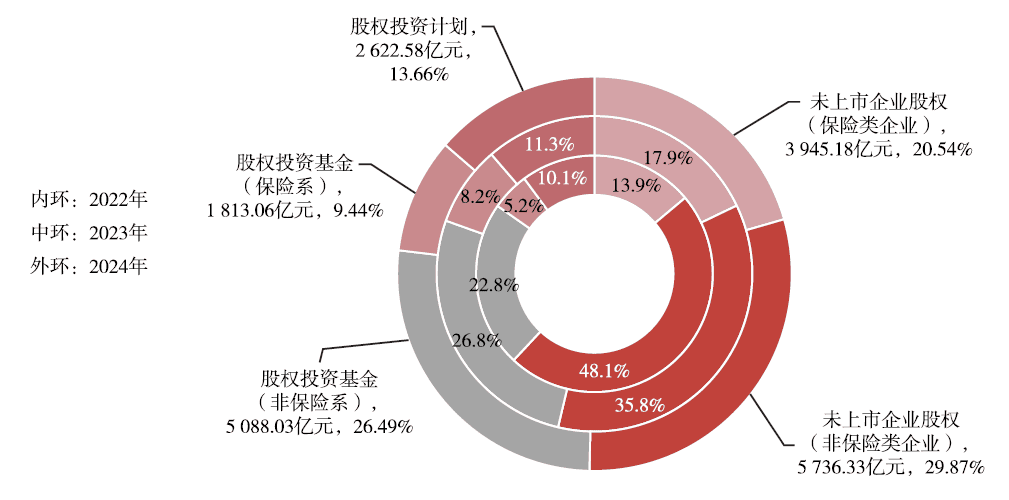图13 2022-2024年保险公司各类股权投资资产配置比例(按机构类型划分)