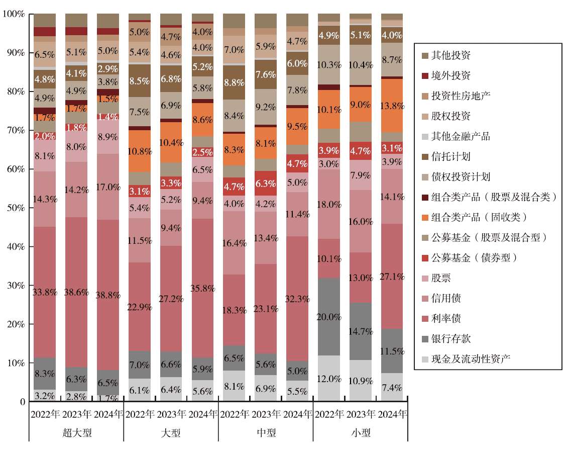 图4 2022-2024年不同规模人身险公司资产配置结构