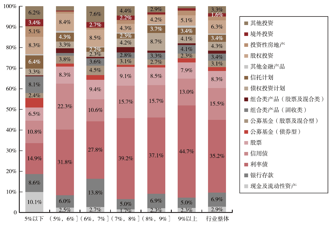 图10 2024年不同综合投资收益率区间对应的保险公司配置结构