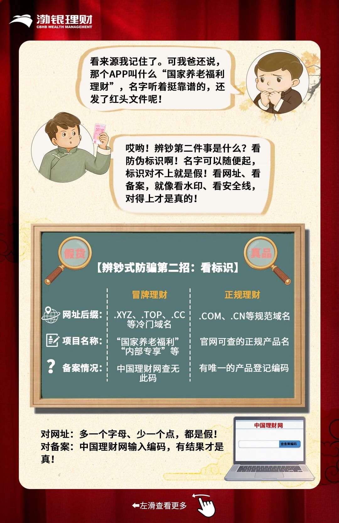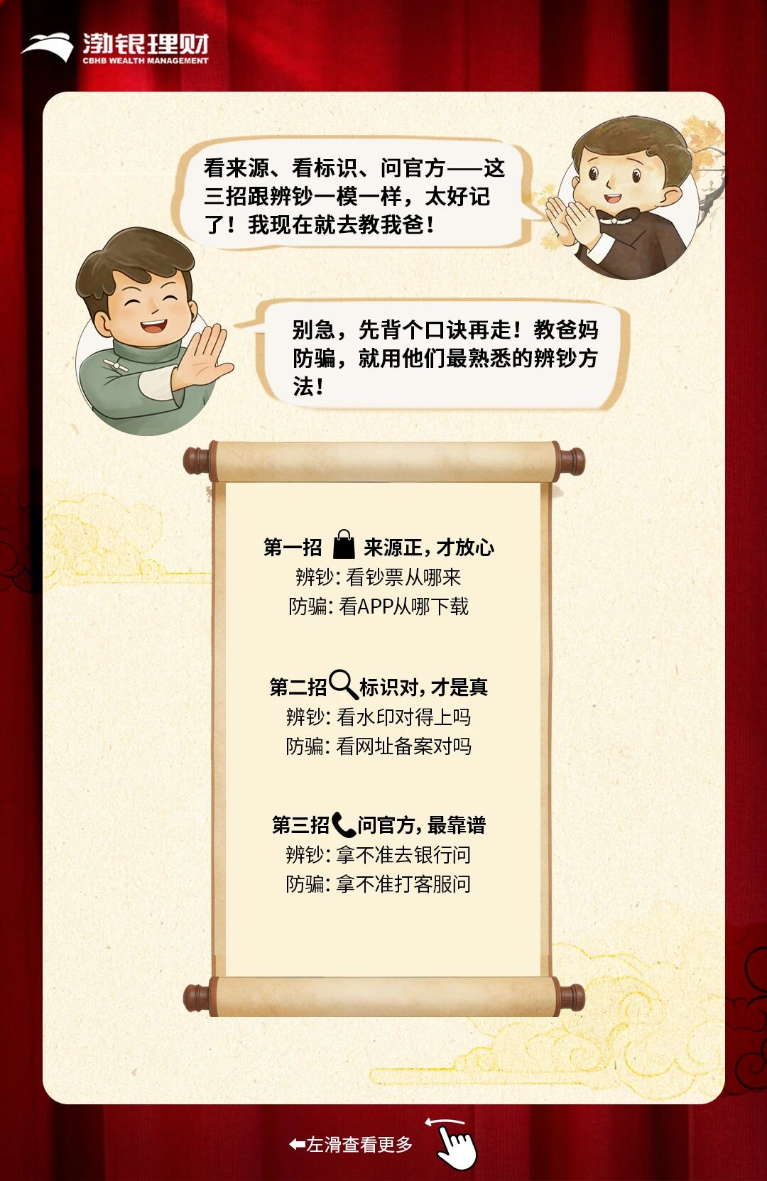 清朗金融网络 守护安心消费丨渤银理财:给爸妈的养老防骗指南,牢记这三招“辨钞式”心法