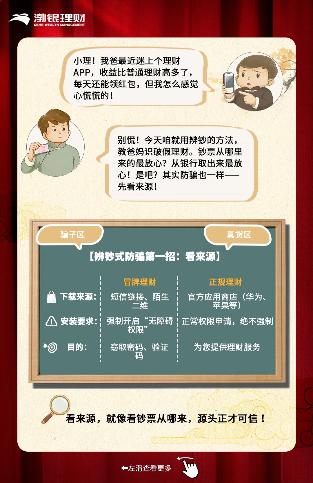 清朗金融网络 守护安心消费丨渤银理财:给爸妈的养老防骗指南,牢记这三招“辨钞式”心法